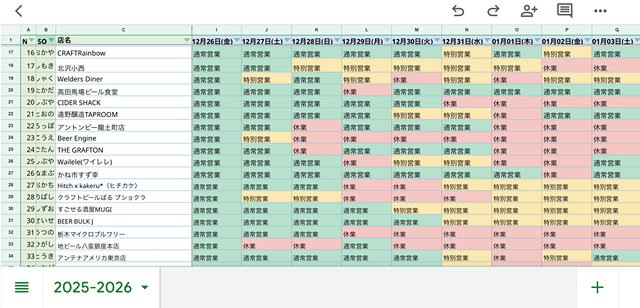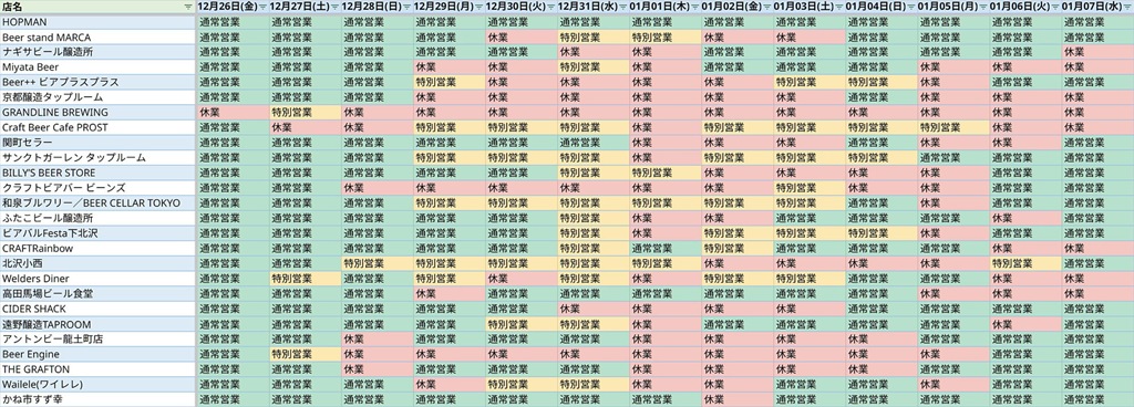 クラフトビール好きの皆さんが、大晦日やお正月も美味しいビールを楽しめますようにクラフトビールのお店の年末年始営業日カレンダーを作成しました。